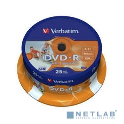 Verbatim Диск DVD-R 4,7Gb 16x Cake Box Printable (25шт) (43538)