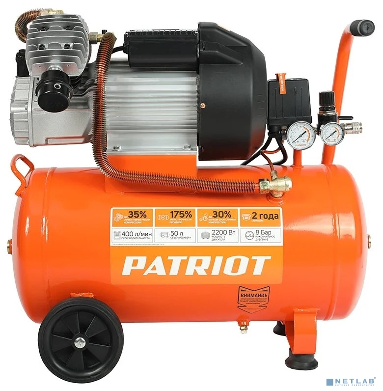 PATRIOT VX 50-402 Компрессор [525306315] {Мощн.: 2.2 кВт; Напр.: 230В~50Гц; Об.двиг.: 2850 об/мин; Производит.: 400 л/мин; Об.ресивера: 50 л; Давл.: 8 бар; Вес: 39 кг;}