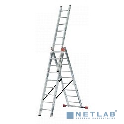 СИБИН Лестница универсальная, трехсекционная со стабилизатором, 11 ступеней [38833-11]