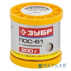 ЗУБР Припой, ПОС 61, трубка с канифолью, 200г, 1мм [55450-200-10C]