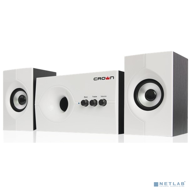 Акустическая система 2.1 CROWN CMS-350 ( Белая лицевая панель; МДФ, 15W+10WX 2=35W,Длина кабеля питания и аудио кабеля 2м;,Управление: питание, громкость, басс, высокие частоты.)