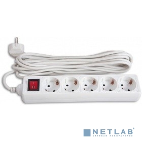 BURO Сетевой удлинитель 5 розеток, 5 метров, (BU-PS5.5/W), белый (пакет ПЭ) {828018}
