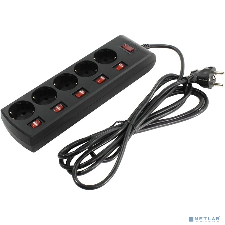 SVEN Фильтр SF-05PL 3.0 м (5 розеток с индивидуальными выключателями), черный [SV-015169]
