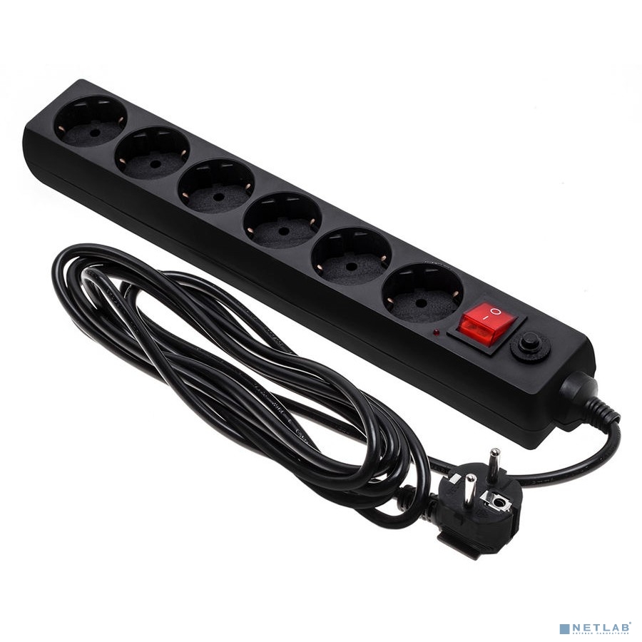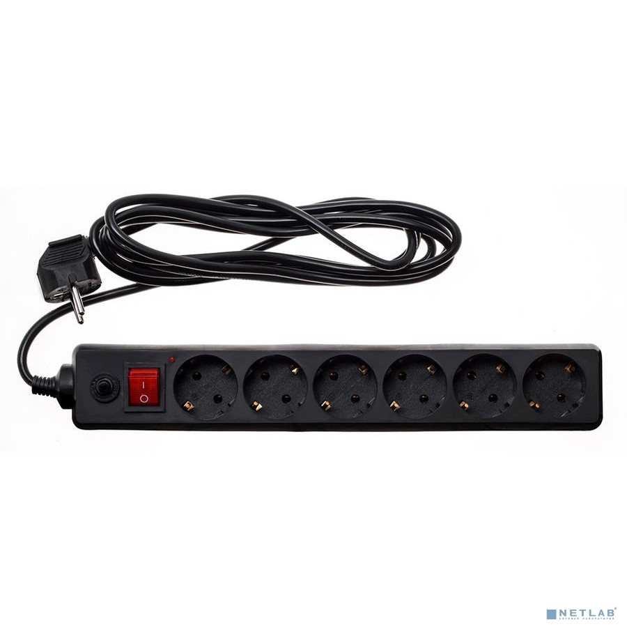 BURO Сетевой фильтр, 6 розеток, 3 метра, (600SH-16-3-B), черный (коробка) {475275}