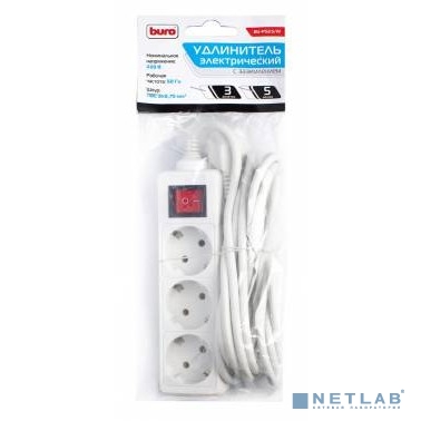 BURO Сетевой удлинитель 3 розетки, 5 метров (BU-PS3.5/W), белый (пакет ПЭ) {828016}