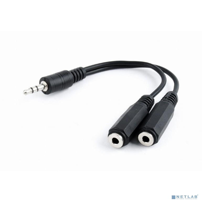 Кабель разветвитель аудио сигнала Cablexpert, джек3.5 папа->2х джек3.5 мама 10см, черный (CCA-415-0.1M)