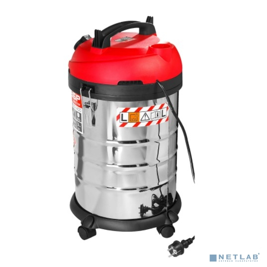 ЗУБР Пылесос строительный [ПУ-30-1400 М3] { М3-30, 30 л, 1400 Вт, сухая и влажная уборка, корпус из нержавеющей стали, розетка до 2000Вт }