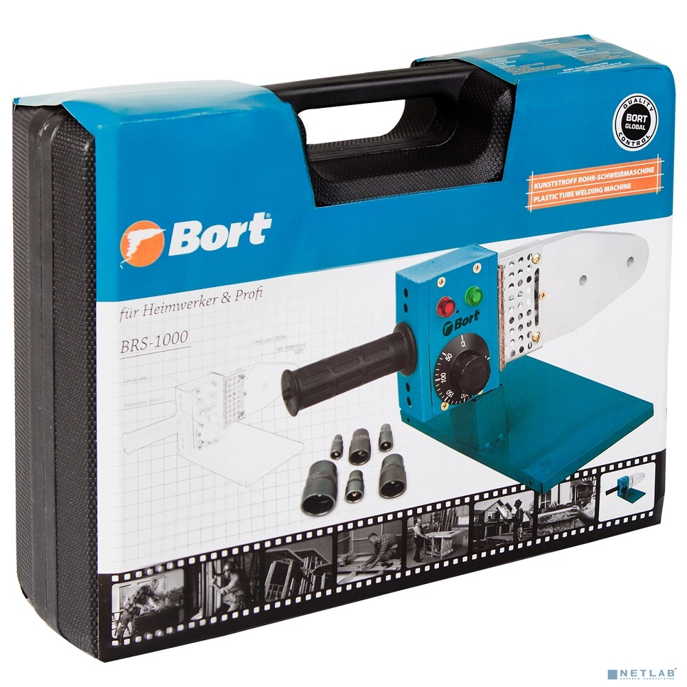 Bort BRS-1000 Аппарат для сварки труб [91271174] { 1000 Вт, 220 - 240 В, 1, 5 кг, набор аксессуаров 6 шт }