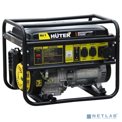 Huter DY9500L 64/1/39 Электрогенератор { четырехтактный, 7500Вт, 220В/50Гц, 91Дб, принудительное охлаждение, бак 25 л, расход бензина 374 г/кВтч, расход масла 6,8 г/кВтч, ручной стартер }