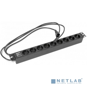 Hyperline SHE19-9SH-2.5IEC Блок розеток для 19" шкафов, горизонтальный, 9 розеток Schuko (10A), 250В, кабель питания 3х1.0мм2, длина 2.5 м, с вилкой IEC 320 C14, 482.6x44.4x44.4мм (ДхШхВ)