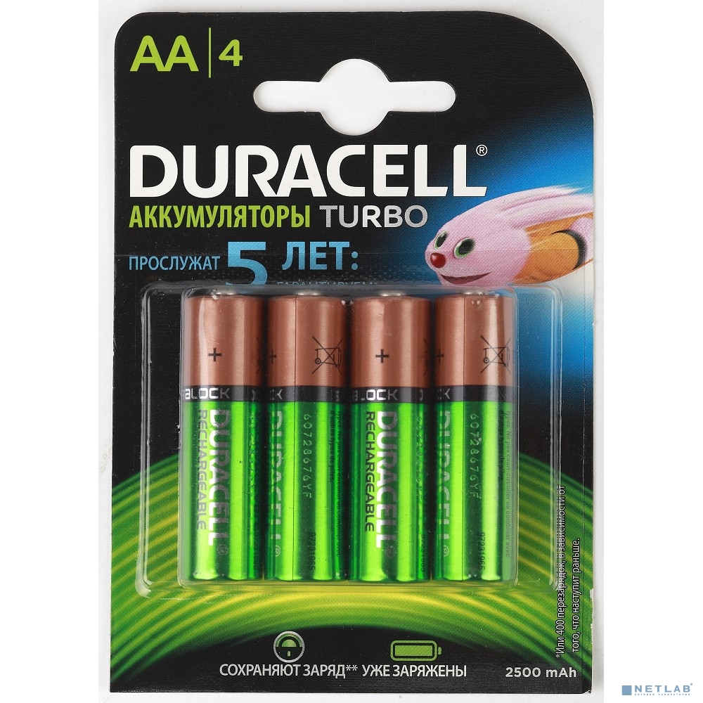 Duracell (TURBO) HR6-4BL 2400mAh/2500mAh (AA2500mAh/4BL) предзаряженные (4/40/15000) (4 шт. в уп-ке)