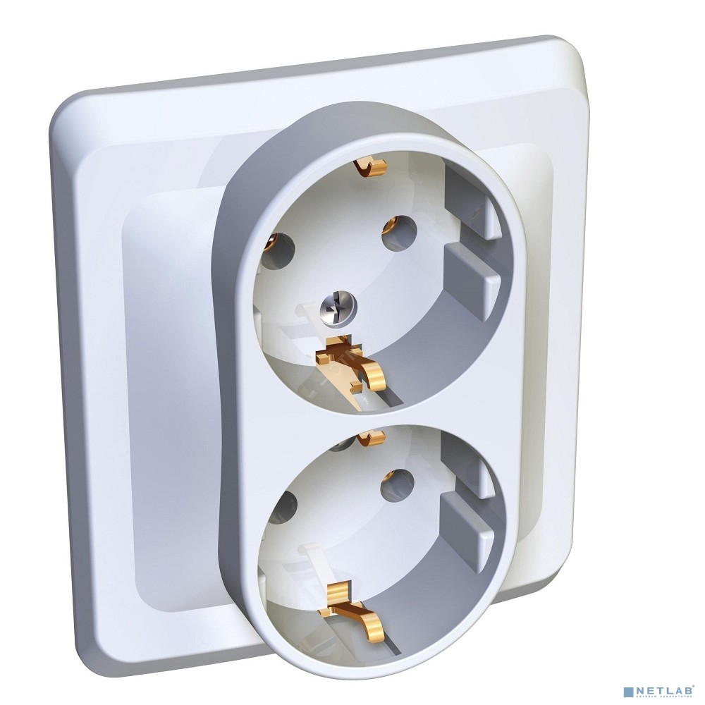 Systeme electric PC16-007B ЭТЮД С/У двойная РОЗЕТКА с заземлением без шторок 16А 250B, БЕЛЫЙ, Россия