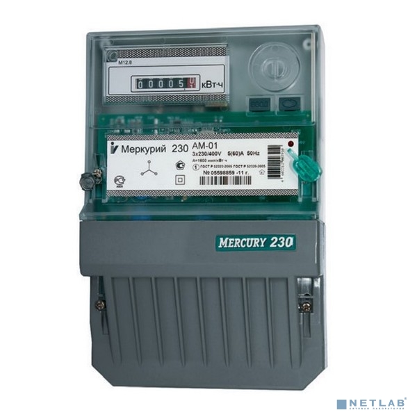 Инкотекс 230AM01 Счетчик Меркурий 230 AM-01 5-60А/400В, трехфазный однотарифный, МЕХ