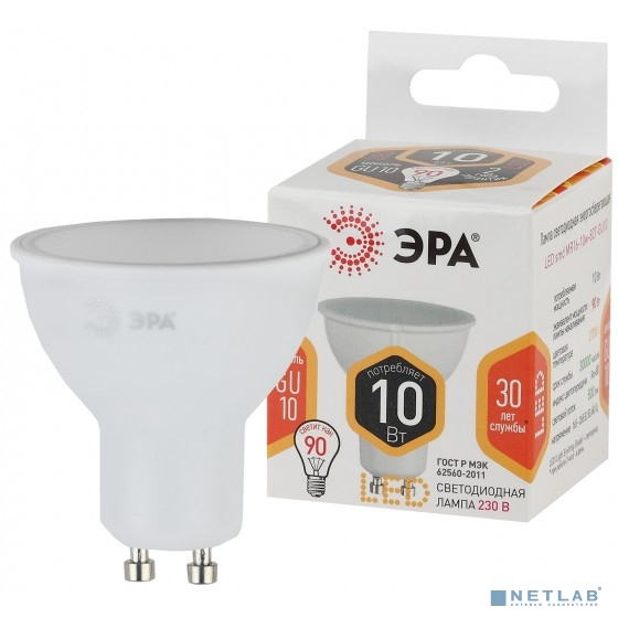 ЭРА Б0032997 Лампочка светодиодная STD LED MR16-10W-827-GU10 GU10 10Вт софит теплый белый свет