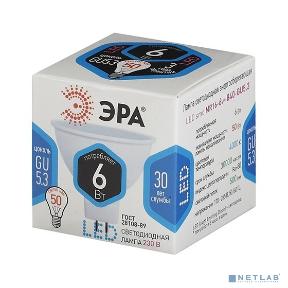Лампа LED MR16-6W-840-GU5.3 от компании ЭРА.