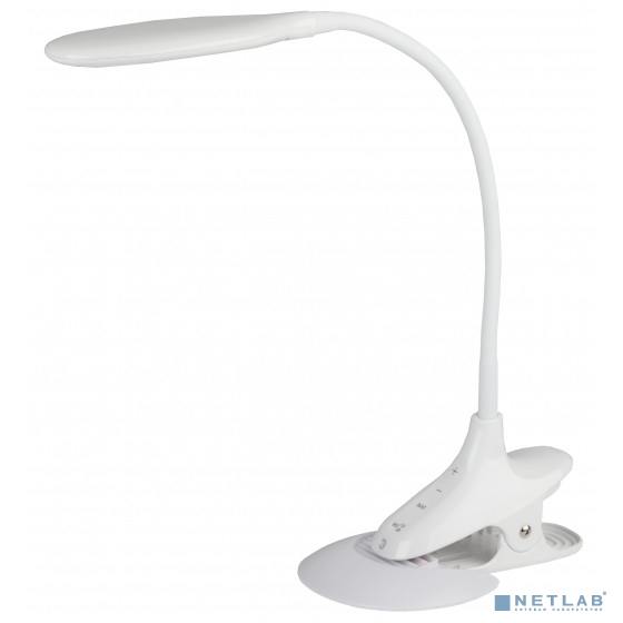 ЭРА Б0019132 Настольный светодиодный светильник NLED-454-9W-W белый {прищепка и основание, 5 ступенчатый диммер яркости, цвет. температура 3000/4500/6500К}