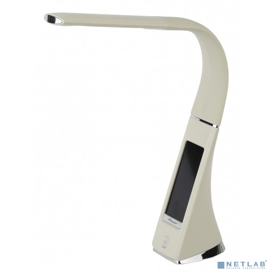 ЭРА Б0031611 Настольный светодиодный светильник NLED-461-7W-BG бежевый {дизайн "кожа", 3 ступенчатый диммер яркости, многофункциональный дисплей, цвет. темп. 4000К}