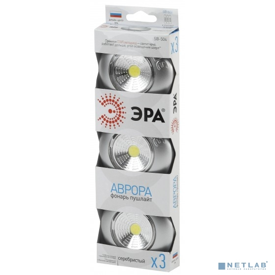 ЭРА Б0031043 Фонарь-подсветка SB-504 Аврора серебристый (упак. 3 шт) {СОВ диод, самоклеющаяся поверхность, 3хААА в комплект не входят}