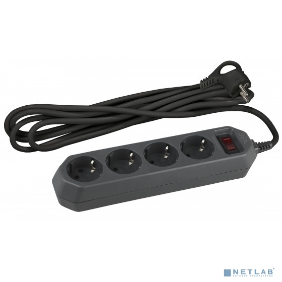 ЭРА Б0019740 Сетевой фильтр USF-M-4es-1.5m-B (черный) с заземл, 3x0,75мм2, с выкл, 4гн, 1.5м {защита от короткого замыкания, защита от перегрузки}