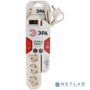 Эра Б0019035 Сетевой фильтр USF-5es-3m-I (бежевый) с заземл, 3x0,75мм2, с выкл, 5гн, 3м {защита от короткого замыкания, от перегрузки, от импульсных помех}
