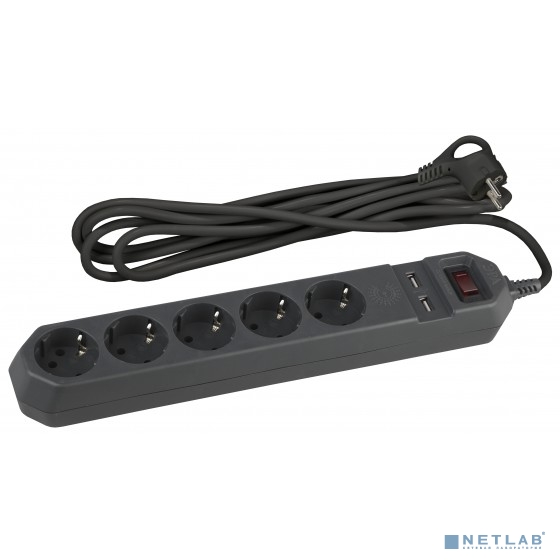 Эра Б0019036 Сетевой фильтр USF-5es-1.5m-USB-B (черный) с заземл, 3x0,75мм2, с выкл, 5гн, 1,5м {защита от короткого замыкания, от перегрузки, от импульсных помех, USB-зарядка}