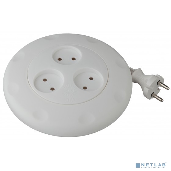 ЭРА Б0019038 Удлинитель-рулетка UR-3-3m-W Calypso без заземления белый 3 гнезда 3 м {полипропилен, 2х0,75 мм2}
