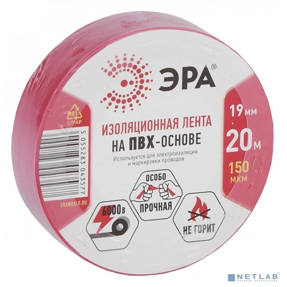 ЭРА C0036541 ПВХ-изолента 19ммх20м красная [043577]