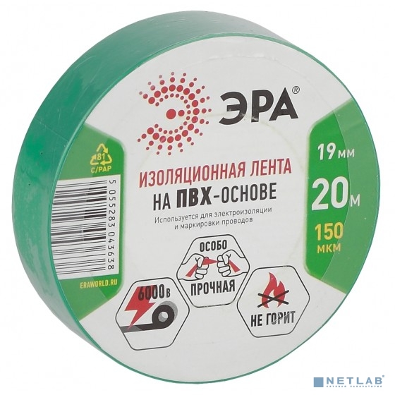 ЭРА C0036544 ПВХ-изолента 19ммх20м зеленая [043638]