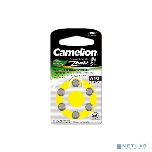 Camelion ZA10 BL-6 Mercury Free (A10-BP6(0%Hg), батарейка для слуховых аппаратов, 1.4 V,90mAh)