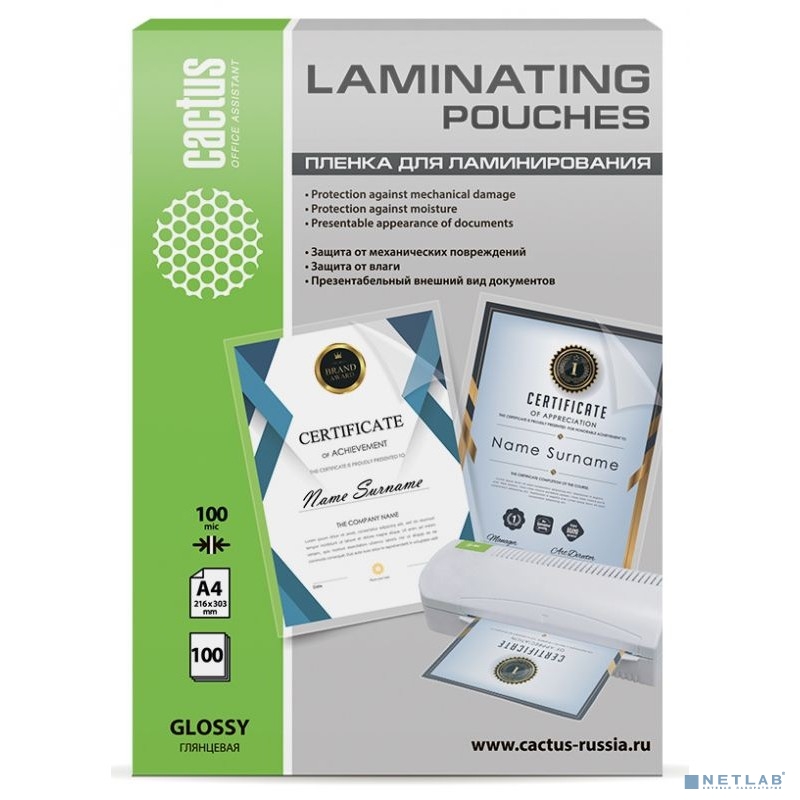 Cactus Пленка для ламинирования 100мкм A4 (100шт) глянцевая 216 x 303мм (CS-LPGA4100100)