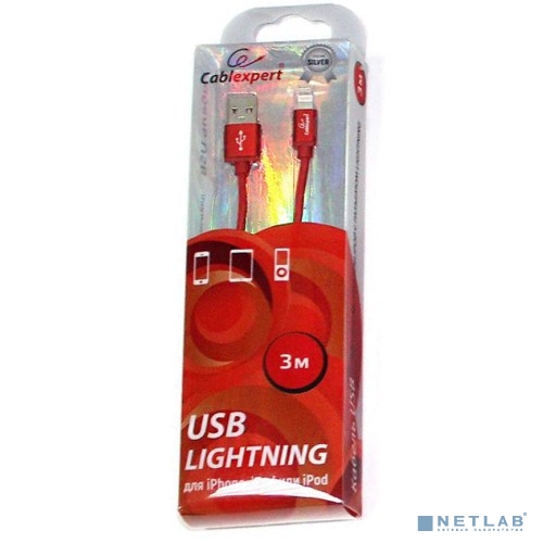 Cablexpert Кабель для Apple CC-S-APUSB01R-3M, AM/Lightning, серия Silver, длина 3м, красный, блистер