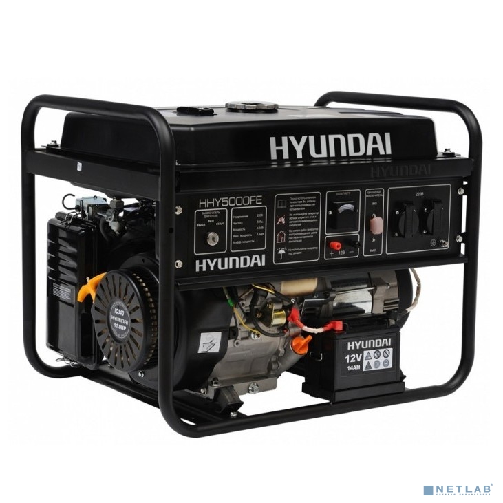 HYUNDAI [HHY 5020FE] Генератор бензиновый { Запуск ручной/электро, HYUNDAI IC340, 4-х такт, 11 л.с., 340 см3, 230В/50Гц, 4,5 кВт/nom 4,0кВт, Вес 76,5 кг }