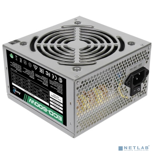 Aerocool 600W Retail ECO-600W ATX v2.3 Haswell, fan 12cm, 400mm cable, power cord, 20+4P, 12V 4+4P, 1x PCI-E 6+2P, 4x SATA, 3x PATA, 1x F