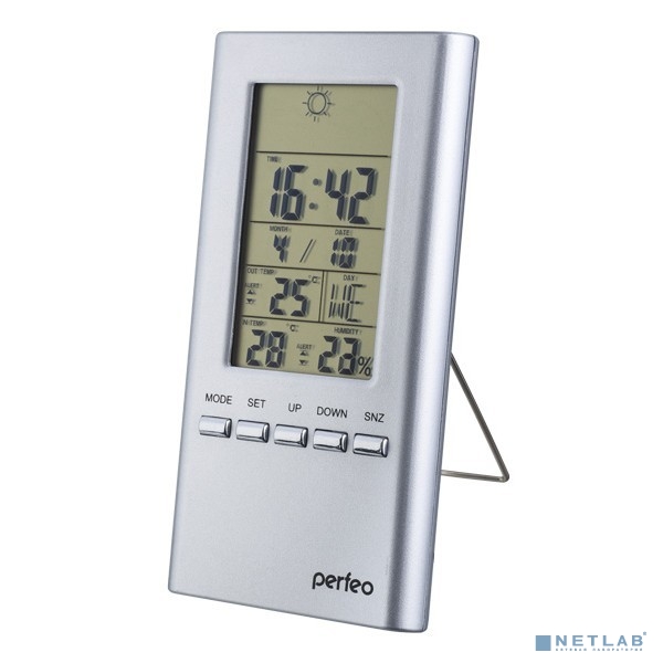 Perfeo Часы-метеостанция "Meteo", серебряный,(PF-S3331F) время, темп., датчик ул. темп., влажность