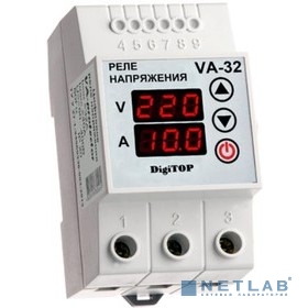 DigiTOP VA-32A Реле напряжения с контролем тока на DIN-рейку, 0-400В, макс. 40А, 5-600 сек.
