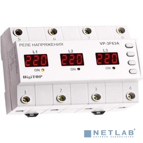 DigiTOP Vp-3F63A Реле напряжения трехфазное на DIN-рейку, 50-400В, макс. 80А, 5-600 сек.