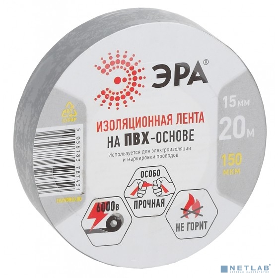 ЭРА Б0039314 ПВХ-изолента 15ммх20м серая (787431)