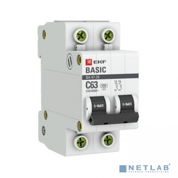 EKF mcb4729-2-10C Автоматический выключатель 2P 10А (C) 4,5кА ВА 47-29 EKF Basic