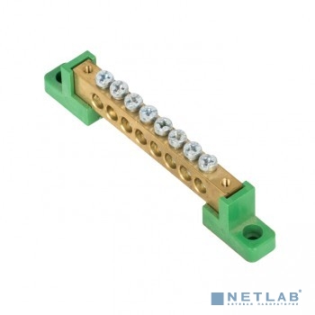 EKF sn0-125-08-2-pe Шина "0" PE 8x12 мм 8 отверстий латунь с контактной пластиной 2 зелёных угловых изолятора EKF PROxima