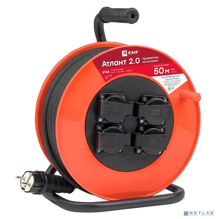 EKF UKA02-16-315-4-50-IP44 Удлинитель на катушке "Атлант 2.0" 4 гнезда 50м с заземлением ПВС 3*1,5 16А/3,5кВт IP44 PROxima EKF