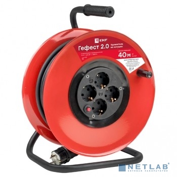 EKF UKG02-16-R325-4-40 Удлинитель на катушке "Гефест 2.0" 4 гнезда 40м с заземлением и предохранителем КГ 3*2,5 16А/3,5кВт PROxima