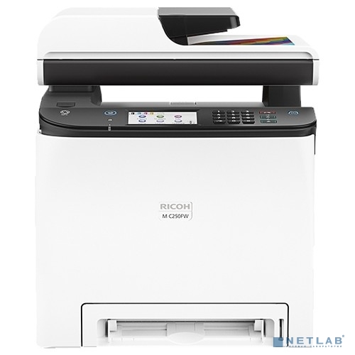 Ricoh M C250FW МФУ, A4, цветное лазерное, 256Мб, 25стр/мин, дуплекс, факс, SPDF50, PCL, PS3, LAN, WiFi, старт.картр.(1000стр), самозапуск (408329)