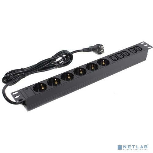 Exegate EX280869RUS Блок розеток ExeGate ServerPro PDU-19H011 Al-5C136S-EU2.5, 19",1U,алюм, 5C13, 6Sch,евровилка, 2.5м