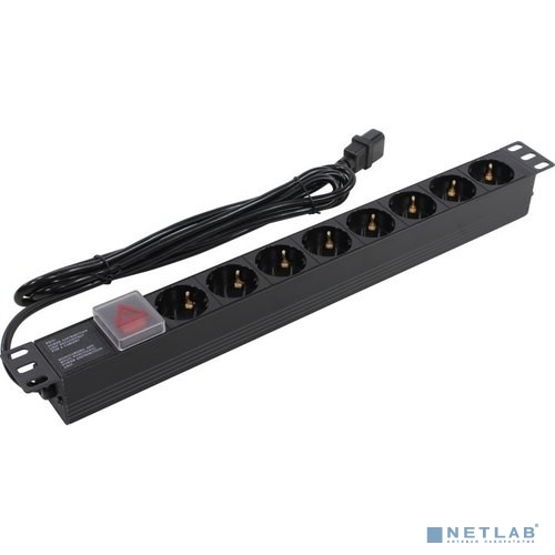 Exegate EX280845RUS Блок розеток ExeGate ServerPro PDU-19H806 Al-8S-C14-3-SW, 19", 1U, алюм, 8Schuko, кабель с C14 3м