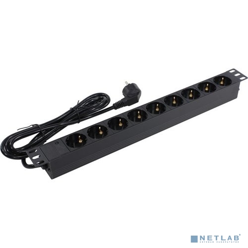 Exegate EX280850RUS Блок розеток ExeGate ServerPro PDU-19H904 Al-9S-EU2.5, 19",1U,алюм, 9Schuko, евровилка, 2.5м