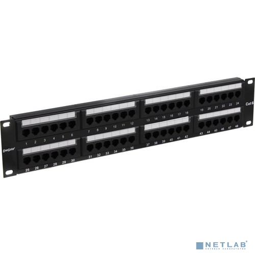 Exegate EX281085RUS Патч-панель UTP 19" 48 port кат.6 ExeGate разъём KRONE&110 (dual IDC), 2U, RoHS, цвет черный