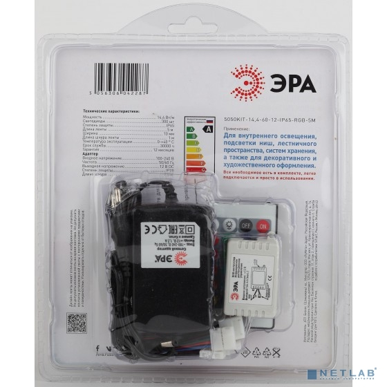 Эра Б0043070 Комплект многоцветной (RGB) светодиодной ленты 5050kit-14,4-60-12-IP65-RGB-5m
