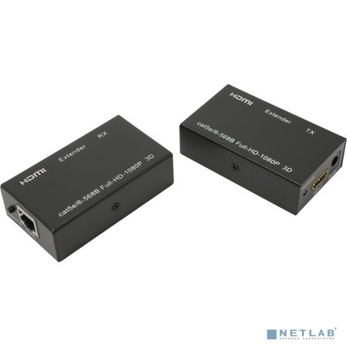 ORIENT VE045, HDMI extender (Tx+Rx), активный удлинитель до 60 м по одной витой паре, HDMI 1.4а, 1080p@60Hz/3D, HDCP, подключается кабель UTP Cat5e/6, питание от внешних БП 5В/1А, метал.корпуса(30905)