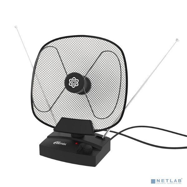 RITMIX RTA-101 AV {Активная, 220В, усиление 32 дБ, DVB-T, DVB-T2, ISDB-T, DMB-T/H, ATSC, DAB (радио), VHF:87.5-230 МГц ; UHF:470-862 МГц; FM: 87,5-108 МГц., 75 Ом, кабель 1,25м, антенны 60см}
