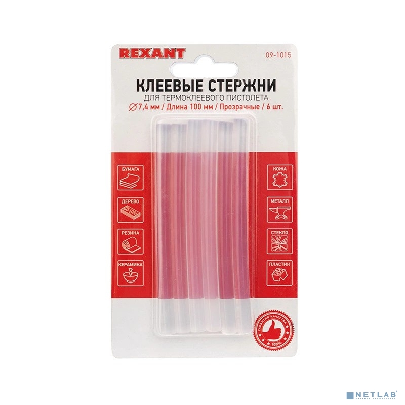 REXANT (09-1015) Клеевые стержни d=7,4 мм, L=100 мм, прозрачные (упак. 6 шт.)